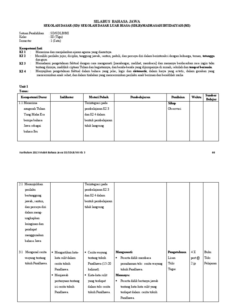 Silabus Bahasa Jawa Kelas 4 Semester 2 - High School Information Silabus Rpp Silabus Bahasa Jawa Sma Kelas X Xi Dan Xii / Download silabus bahasa jawa kelas 4 sdkurikulum 2013.